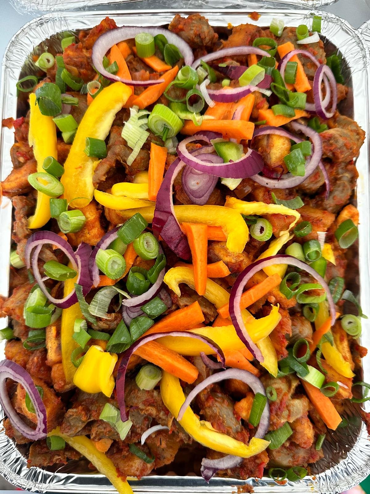 gizzard, plantain garnish with vegetable.