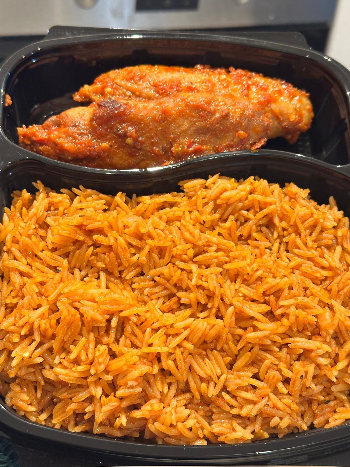 Jollof Rice with Turkey and plantain as slide.